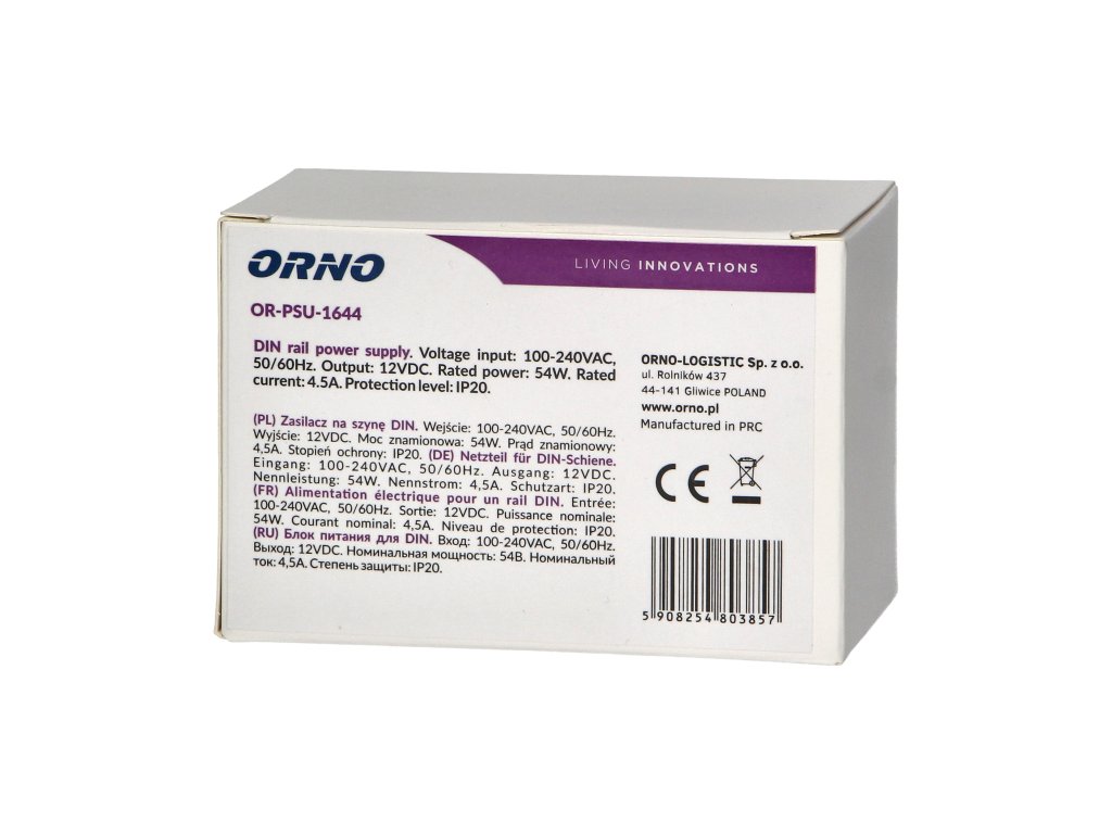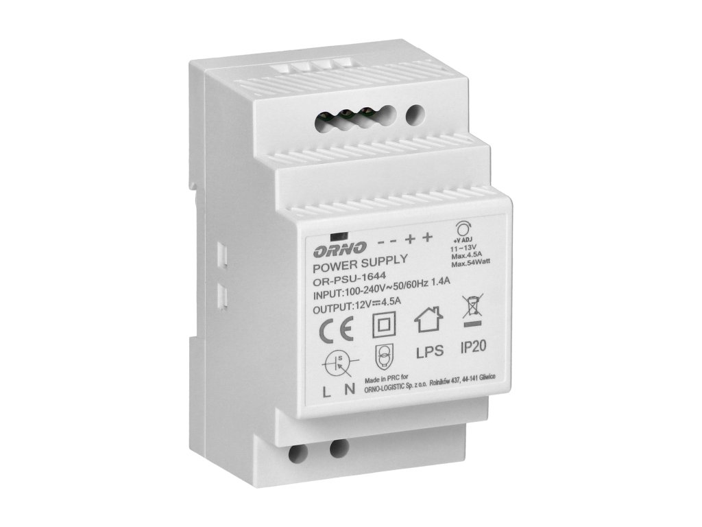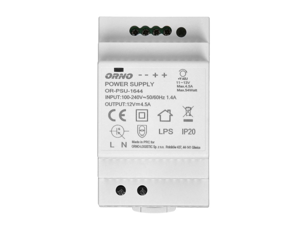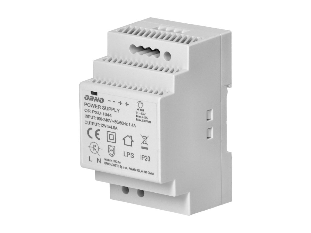 Visoko učinkoviti i pouzdani izvor napajanja za DIN šinu s maksimalnom snagom od 54W. opterećenje i izlazni napon 12V DC, koji se može podesiti. Razvijen je za ugradnju na DIN šinu i može se koristiti u mnogim aplikacijama, npr. industrijske aplikacije, niskonaponske instalacije, kao što su CCTV ili alarmni sustavi. Ovaj adapter napajanja uključuje: zaštitu od preopterećenja, zaštitu od prenapona i zaštitu od prenapona. Integrirana dioda ukazuje na aktivaciju uređaja.