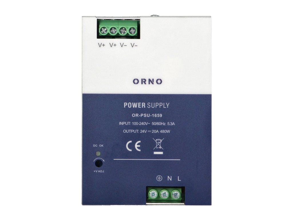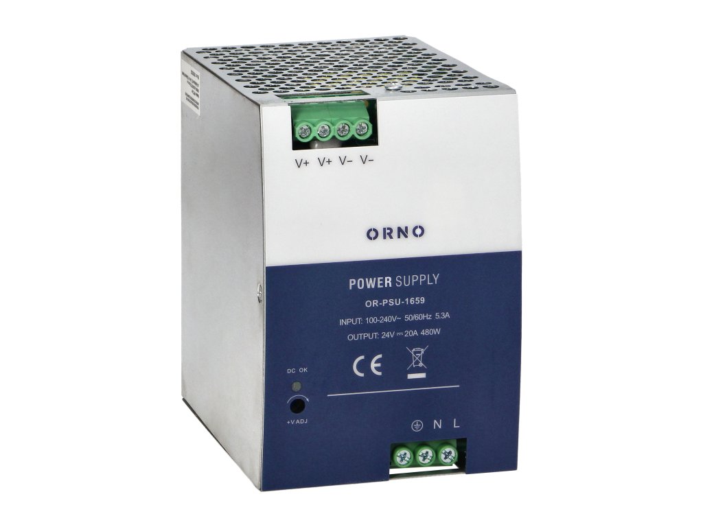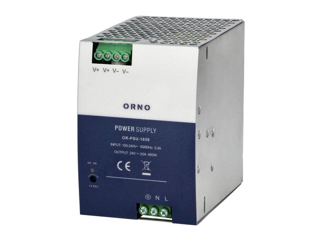 Industrijski napajajući izvor pogodan za montažu na DIN TS-35/7,5 ili 15 letvu. Proizvod je smješten u metalnom kućištu koje pruža otpornost na niske i visoke temperature. Uređaj je pogodan za korištenje u zahtjevnim industrijskim okruženjima. Primarno se koristi za napajanje industrijske automatizacije, upravljanje strojevima i odgovoran je za besprijekoran rad industrijskih sustava. Odlikuje se naponskom zaštitom klase III i dodatnom strujnom i kratkospojnom zaštitom. Otvor na kućištu napajanja omogućuju slobodan protok zraka, tako da je uređaj stalno hlađen. To je posebno važno za neprekidan rad uređaja i značajno povećava njegovu dugovječnost.
