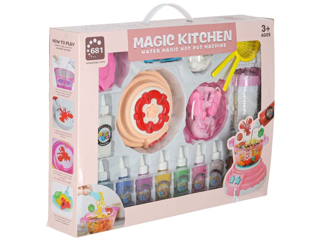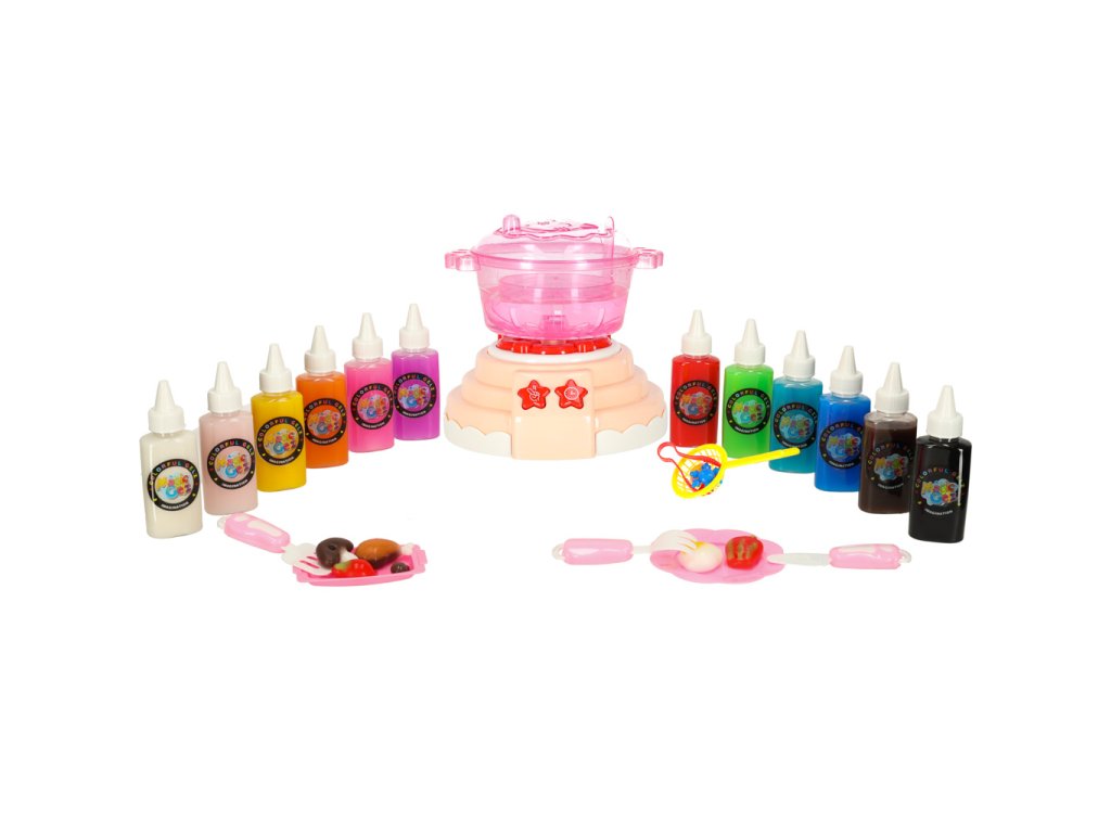 Jedinstveni lonac sa svjetlosnim i zvučnim efektima čini proces stvaranja još uzbudljivijim! Dijete se može osjećati kao pravi izumitelj, miješati različite boje i promatrati kako nastaju fantastične gel tvorevine. Vizuallni i zvučni efekti daju zabavi realističnost i uvode djecu u svijet pun fascinantnih otkrića. Istodobno, to je velika zabava za cijelu obitelj. Što kažete na posebnu poslasticu koja se danas servira na preslatkim dječjim tanjurima