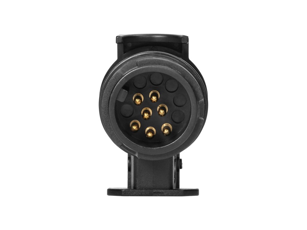 Adapter za prikolicu 13 na 7 polova, plast 12/24V idealno je rješenje za sve vozače koji trebaju povezati svoje vozilo opremljeno 13-polnom utičnicom s prikolicom koja ima 7-polni konektor. Ovaj praktični adapter omogućuje jednostavno i bezproblematično povezivanje, osiguravajući tako ispravno funkcioniranje svjetala i drugih elektroničkih uređaja na prikolici.
