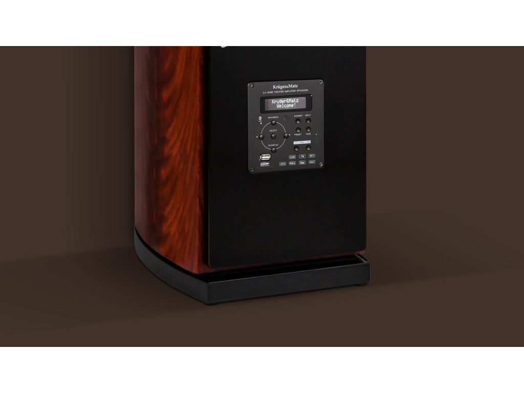 Na prednjoj strani aktivnih stereo zvučnika Kruger&Matz Destiny nalazi se panel za upravljanje, koji omogućuje upravljanje funkcijama seta. Osim tipki, na raspolaganju je i zaslon koji povećava udobnost korištenja, te kontrolna lampica Bluetooth koja informira o uparivanju uređaja.
