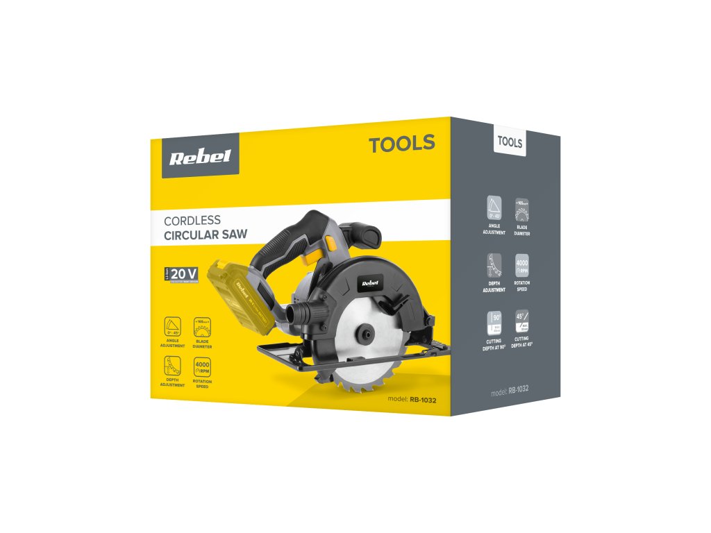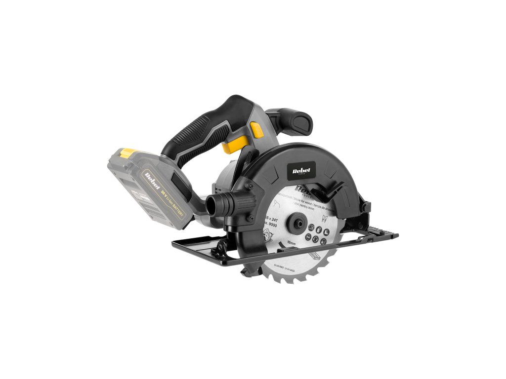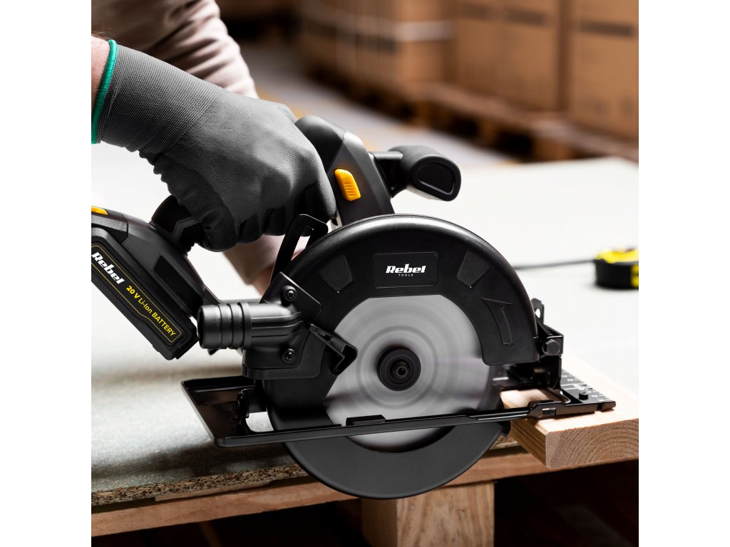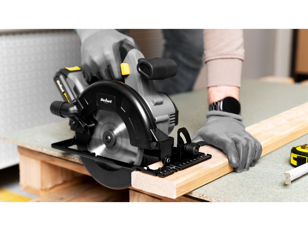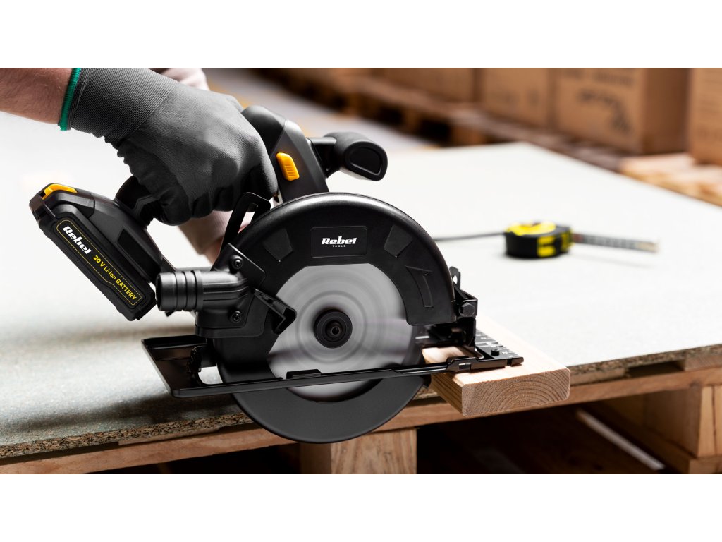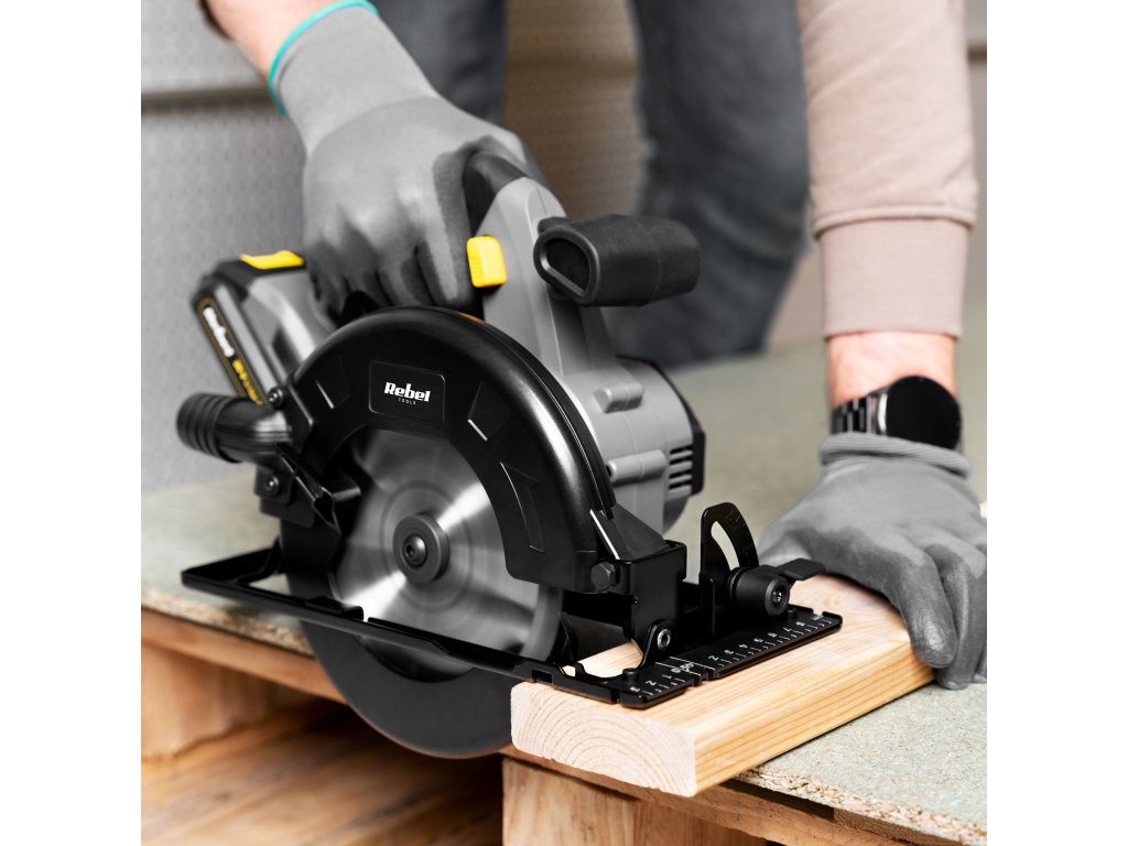 Bežični rad nije jedina funkcija koja povećava udobnost pri stolarskim radovima. Zahvaljujući savršeno oblikovanoj ergonomskoj dršci, kružna pila sigurno leži u ruci. Električni alat Rebel Tools nije samo o udobnosti, već i o sigurnosti, stoga je kružna pila opremljena zaštitnim poklopcem koji vas štiti od nesreća. Osim toga, uređaj ima i blokadu prekidača koja sprečava slučajno pokretanje.
