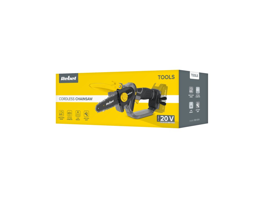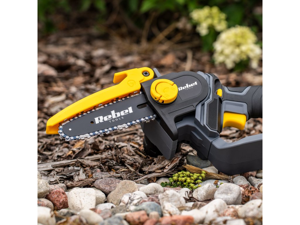 Mini akumulatorska pila Rebel dizajnirana je kako bi omogućila jednostavno rukovanje pri orezivanju drveća i grana. Uređaj je opremljen izdržljivim, ali laganim tijelom, što olakšava nošenje. Zahvaljujući ovom alatu, možete slobodno manevrirati među gustim granama i postići precizne rezove.