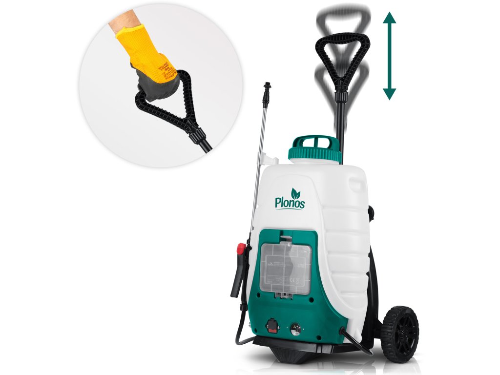 - ručica s bravom za veći komfor pri dugotrajnom radu.Mobilnost i udobnost: vaš vrt pod kontrolom s baterijskom prskalicom na kolicima!