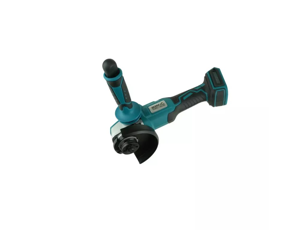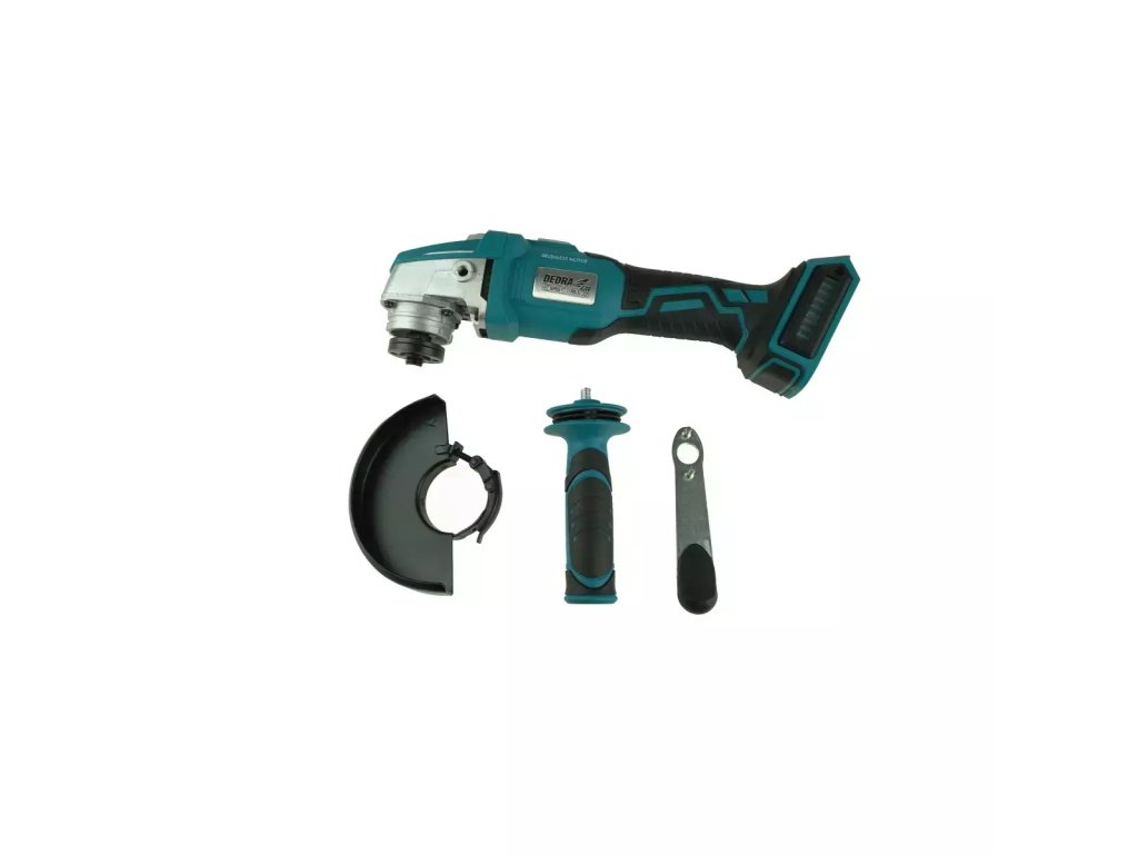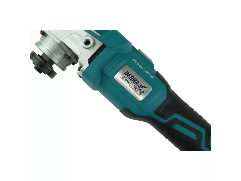 Ovaj alat je namijenjen za rezanje i brušenje. Motor brusilice bez četkica ima brzinu od 8500 o/min i kompatibilan je s diskovima promjera 125 mm i 115 mm. Brusilica je opremljena sigurnosnim prekidačem koji isključuje napajanje u slučaju prevelikog pritiska alata na obradak, što bi moglo uzrokovati oštećenje ili pregrijavanje alata. Sustav brze izmjene oštrice, dvopoložajna bočna ručka, gumirana ručka i produženi pokrov značajno povećavaju udobnost rada s alatom. Ključ za izmjenu oštrice smješten je u bočnoj ručki, tako da je uvijek na dohvat ruke kod zamjene oštrice ili drugih nastavaka. Kućište je izrađeno od najlona s jezgrom od staklenih vlakana, što povećava otpornost na mehanička oštećenja i UV zračenje. Ergonomiju i udobnost pri radu poboljšava mala težina uređaja i integrirana ručka. Preporučena baterija za korištenje s kutnom brusilicom je 4,0 Ah DED7034 ili 5,0 Ah DED7035.