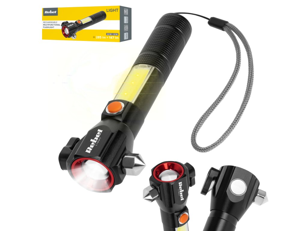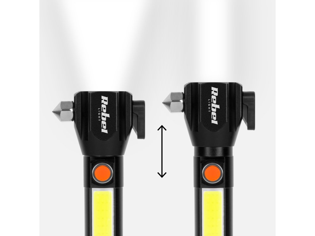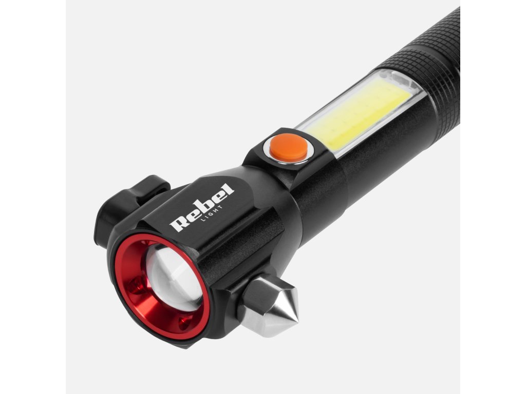 Akumulatorska višefunkcijska svjetiljka Rebel (zoom, nožić, čekić za staklo).