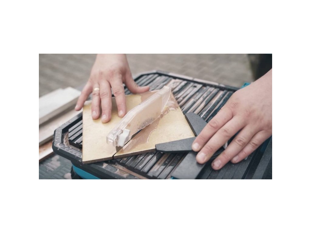 Konstrukcija koja podsjeća na klasične stolne rezače pločica omogućuje mokro rezanje dijamantnim diskovima dimenzija 110 × 22,2 mm. Ovaj rezač ističe se po tome što ne mora biti povezan s električnom mrežom, što je velika prednost posebno za završne timove ili ljude koji nemaju uvjete za rezanje u zatvorenom prostoru.