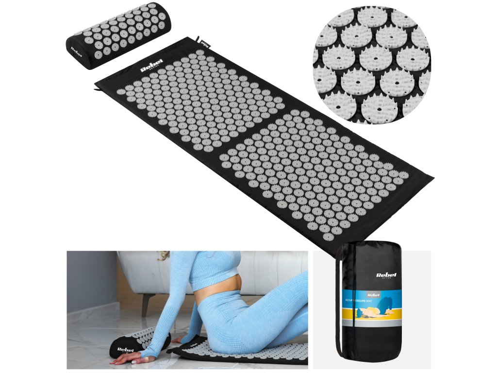Akupresurna prostirka s jastučićem, 110x42cm, XL, sivi čunjići, Rebel Active