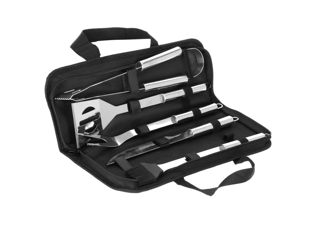 - Kofer sadrži elastične trake i čičak traku iznutra, zahvaljujući čemu svaki dodatak za roštilj ima svoje mjesto i ne leži slobodno, udara druge i ne oštećuje ih.