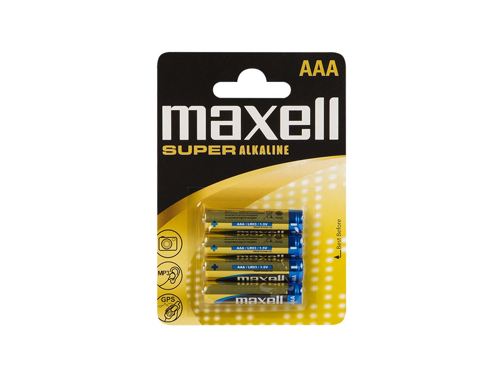 Blister s 4 komada kvalitetnih alkalnih baterija AAA od tvrtke Maxell.