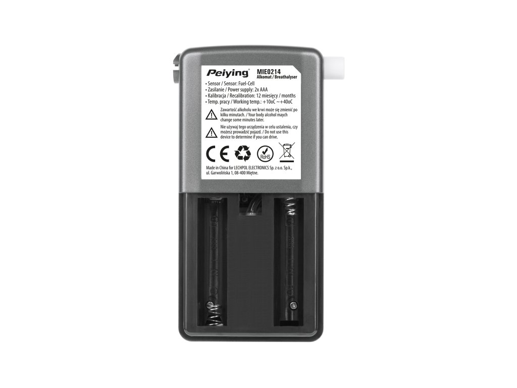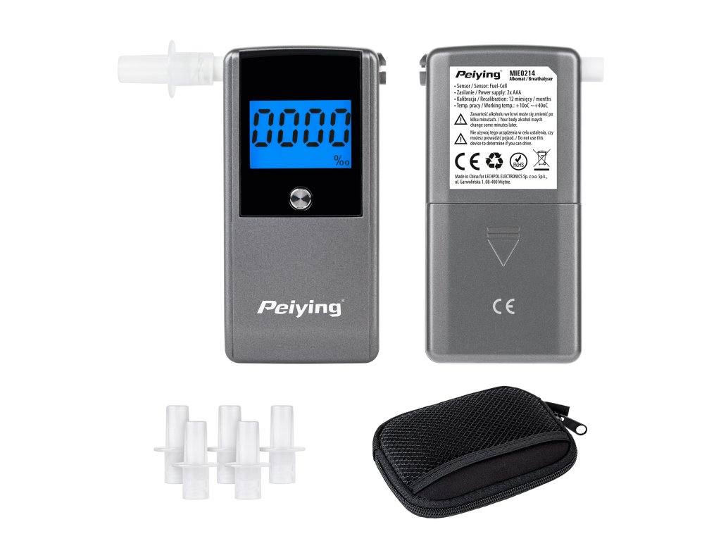 Alkoholni tester Peiying KT-571 s elektrokemijskim senzorom nove generacije vrlo je korisni uređaj kada ste suočeni s teškom odlukom - voziti ili još ne. Analizator daha ima nekoliko funkcija uključujući senzor prekida dovoda zraka, kao i zvučni signal koji potvrđuje kontinuirani izdah, što jamči pouzdane i točne podatke s točnošću od 0,005%. Još jedna prednost uređaja je mogućnost promjene mernih jedinica na %, ‰ ili mg/l i funkcija memorije posljednjih pet mjerenja. Analizator daha također ima brojač ukupnog broja izvršenih mjerenja, što je korisno pri izračunu vremena za rekalibraciju (nakon 12 mjeseci ili nakon 200 mjerenja).