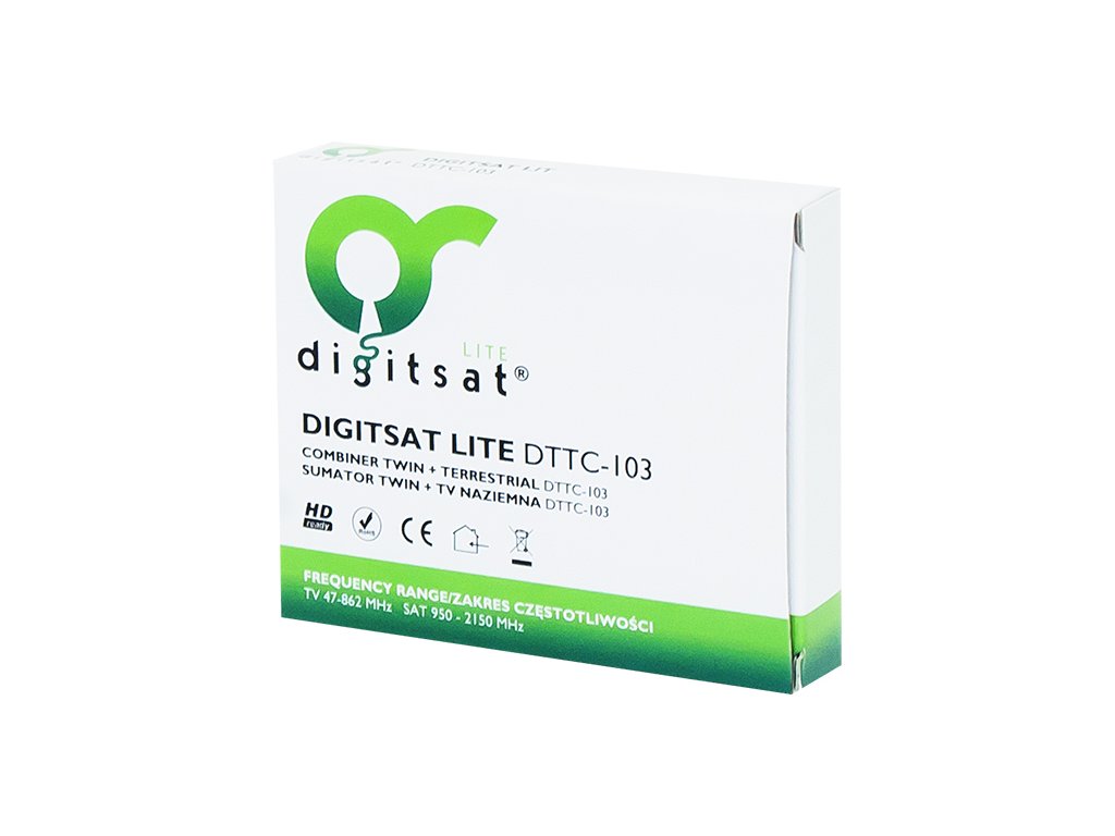 Sumator marki Digisat DTTC-103 to urządzenie umożliwiające łączenie sygnału telewizyjnego z anteny naziemnej i sygnału satelitarnego z konwertera typu twin. Następnie sygnał ten może być przesłany do dwóch niezależnych punktów dostępowych (np: gniazd RTV-SAT)