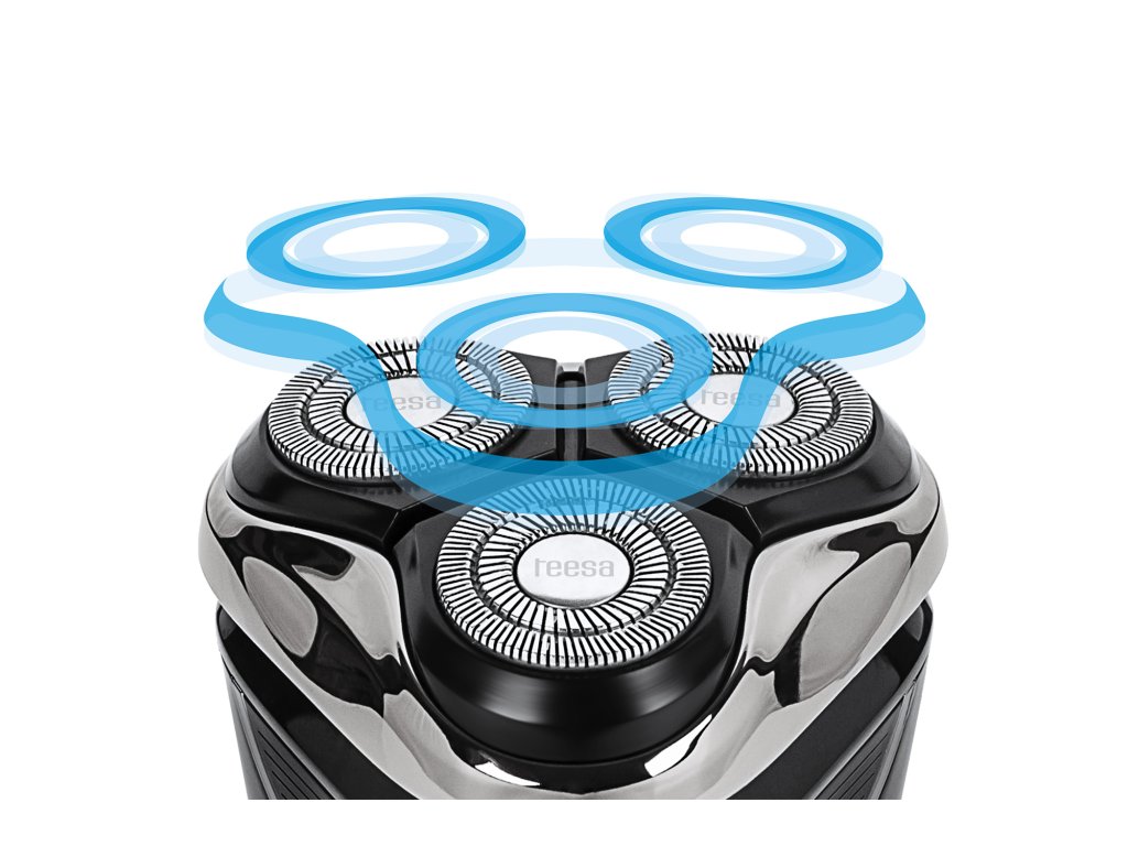 Rotacijski brijač HYPERCARE T300 opremljen je s tri fleksibilne oštrice od nehrđajućeg čelika. Njihova posebna konstrukcija i brzina do 7200 okretaja u minuti garantiraju da će se uređaj lako nositi s bilo kojom bradom.