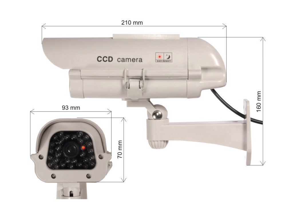 Bardzo dobra kopia oryginalnej kamery z imitacją diod IR oraz diodą świecącą na czerwono (zasilanie: panel solarny, lub dodatkowe akumulatorki AA nie dołączone do zestawu)