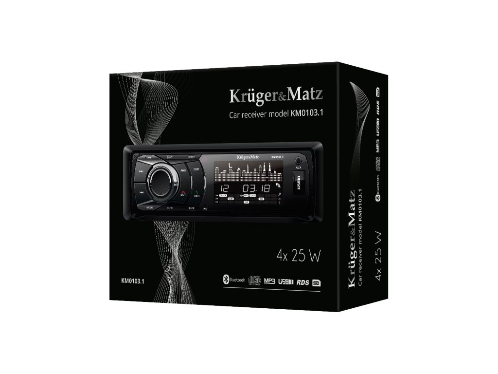 Cijenite funkcionalnost Odaberite audio uređaj za automobil od tvrtke Kruger&Matz i reproducirajte glazbu s različitih medija. Model KM 103.1 je autoradio s Bluetooth sučeljem, CD playerom, AUX priključkom i čitačem memorijskih kartica. Uređaj će svirati s maksimalnom snagom od 4x 25 W, a dodatna postavka za basove i visoke tonove omogućuje prilagodbu zvuka vaših omiljenih pjesama. Ljubitelji naprednih audio instalacija u automobilu mogu proširiti zvučni sustav s dodatnim zvučnicima i pojačalima - sve to zahvaljujući četiri RCA izlaza i izlazu za subwoofer.