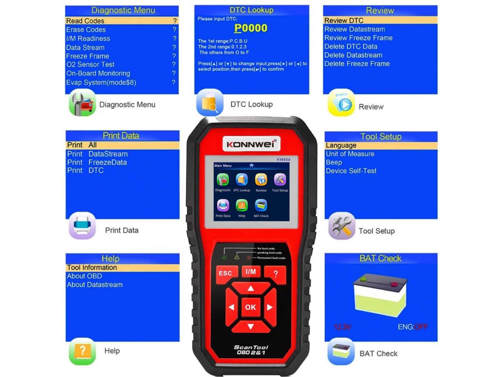 Autodijagnostika OBD2 Konnwei KW850