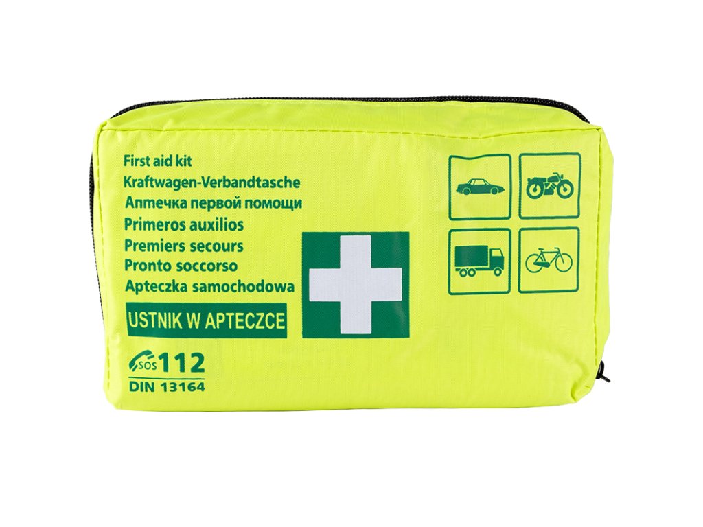 Potpuna automobilska prva pomoć u skladu s normom DIN 13164 koja sadrži sva sredstva propisana pravilnikom. Kutija prve pomoći obavezna je u svakom motornom vozilu.Značajke: