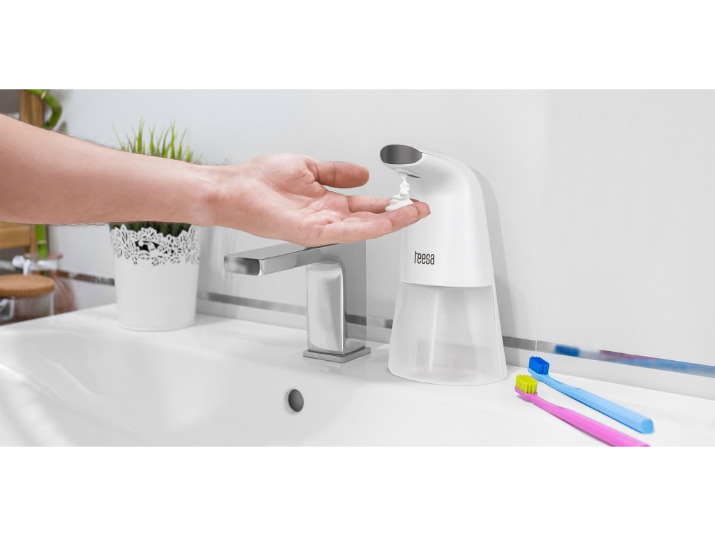 Automatski dozator sapuna opremljen je senzorom pokreta, što znači da je dovoljno približiti ruke dozatoru da se aplicira doza pjene. Dozator sapuna marke Teesa ima veliku kapacitet boce od 300 ml, tako da se ne morate brinuti o čestom nadopunjavanju. Štoviše, poluprozirna je, što značajno olakšava kontrolu količine sapuna. Svestranost dozatora povećava i mogućnost korištenja ne samo tekućeg sapuna već i sapunaste pjene, što će svakako biti privlačno djeci i potaknuti ih na češće pranje ruku.