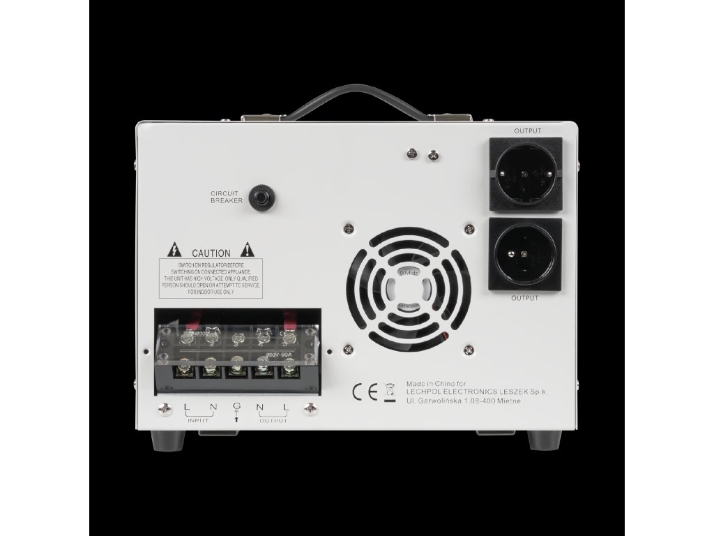 Snaga: 10000 VA Ulazni napon: 130-260 VAC Ulazna frekvencija: 50 Hz Izlazni napon: 230 VAC Izlazna frekvencija: 50 Hz Točnost: +/- 3% Učinkovitost: 98% Izlazni napon: jedna faza Transformator: toroidni transformator C.R.G.O. 2 izlazne utičnice: njemačke, francuske (poljske) Zaštite: protiv kratkog spoja, previsokog napona, pregrijavanja Radna temperatura: 0-40°C Vlažnost zraka: 10-90% Temperatura skladištenja: -15-45°C Težina: 22 kg Dimenzije: 388 x 302 x 210 mmSnaga: 10000 VA