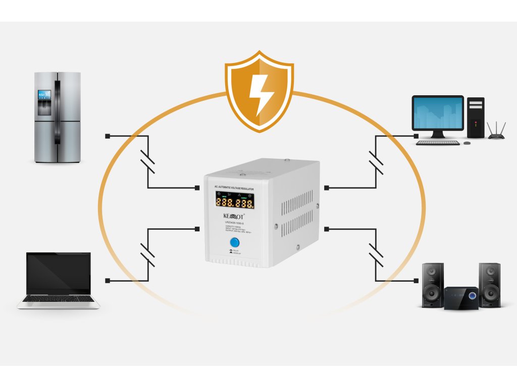 Nije važno opterećenje mreže i fluktuacija izlaznog napona, stabilizator KEMOT SER-1000-S održava napon na razini 230 V ±8 %, što omogućuje učinkovito funkcioniranje svih uređaja, uključujući i onih koji su osjetljivi na kvalitetu mrežnog napona. Regulacija se odvija automatski, što osigurava visoku preciznost izlaznog napona. KEMOT SER-1000-S primjenjiv je u kućanstvima, kao i u uredima, gdje je idealan za televizore i audio-video opremu, uključujući zvučne stupove, miniveže i druge audio/video uređaje, ili računala.