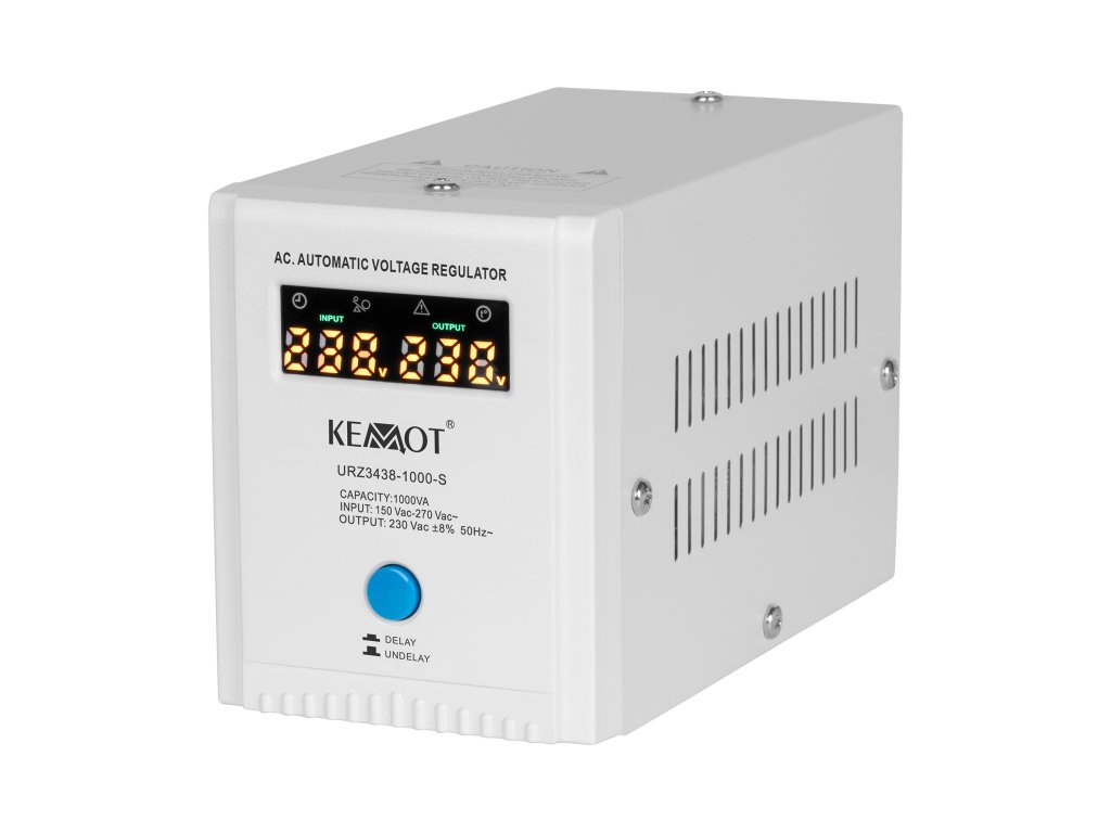 Ako trebate stabilizator napona za uređaje s velikom trenutnom startnom strujom, odaberite model opremljen funkcijom kašnjenja uključivanja DELAY. KEMOT SER-1000-S opremljen je gumbom za kašnjenje uključivanja DELAY u rasponu od 6 do 180 sekundi, što smanjuje rizik od oštećenja kada priključeni uređaji imaju veliku trenutnu startnu struju. Osim toga, stabilizator SER-1000-S ima zaštitu od previsokog i preniskog napona, preopterećenja, pregrijavanja i kratkog spoja.