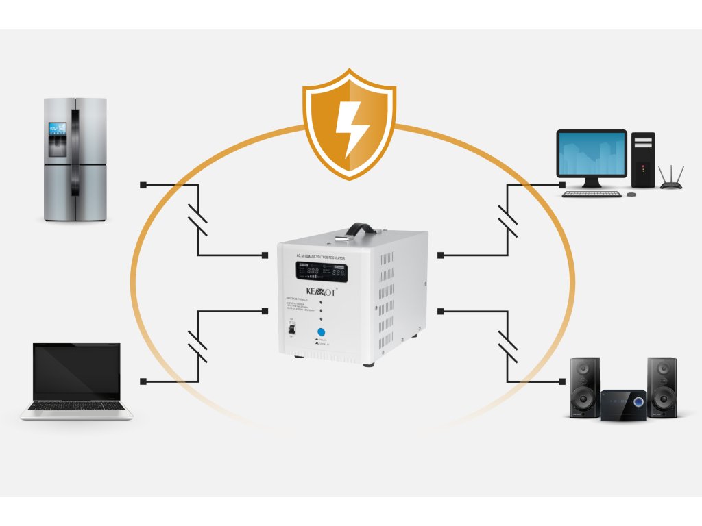 Bez obzira na opterećenje mreže i varijacije izlaznog napona, stabilizator KEMOT SER-10000-S održava napon na razini od 230 V ±8%, što omogućuje učinkovito funkcioniranje svih uređaja, uključujući one osjetljive na kvalitetu mrežnog napona. Regulacija se odvija automatski, što osigurava visoku preciznost izlaznog napona. KEMOT SER-10000-S pronalazi svoju primjenu u domaćim i uredskim uvjetima, idealan je za televizore i RTV uređaje, kao i zvučnike, mini tornjeve i druge audio/video uređaje ili računala.