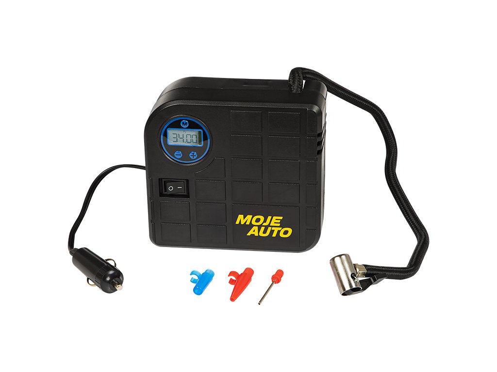 Za napuhavanje guma automobila i bicikala. Sadrži mlaznice za napuhavanje sportske i rekreacijske opreme. Opremljen napojnim kabelom s 12V utikačem za upaljač za cigarete. Cijev za tlak s blokiranim vrhom ventila.