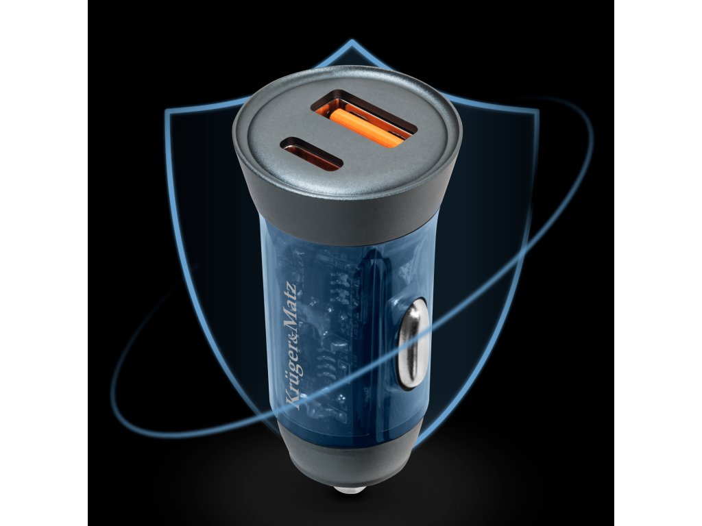 Brzo punjenjeUvijek imajte napunjene uređaje tijekom dugih poslovnih putovanja ili odmora. Autopunjac USB Kruger&Matz opremljen je tehnologijom brzog punjenja. Zahvaljujući njoj, vaš pametni telefon, tablet ili drugi kompatibilni uređaj napuniti će se u znatno kraćem vremenu nego kod tradicionalnog uređaja.