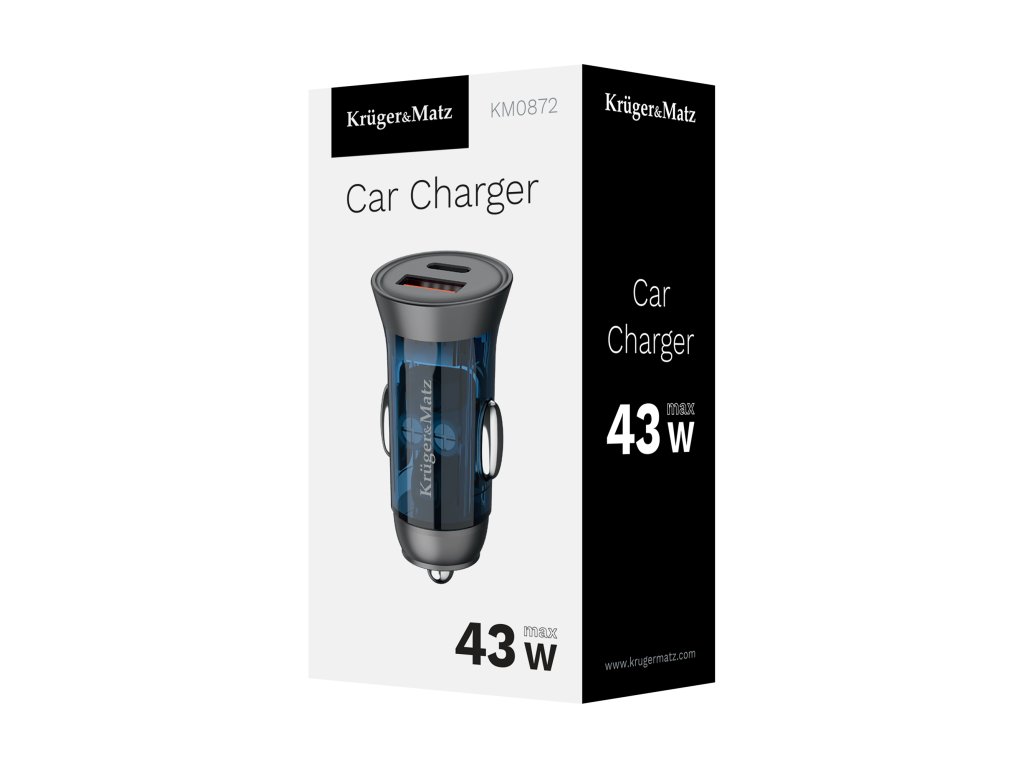 Autopunjac Kruger&Matz KM0872 je neophodan dio opreme svakog vozila. Ovaj elegantni uređaj, opremljen USB A i USB Type-C konektorima, nudi maksimalnu snagu od 43 W. Zahvaljujući njemu, svaki vozač može uživati u pouzdanom i brzom punjenju svojih mobilnih uređaja.