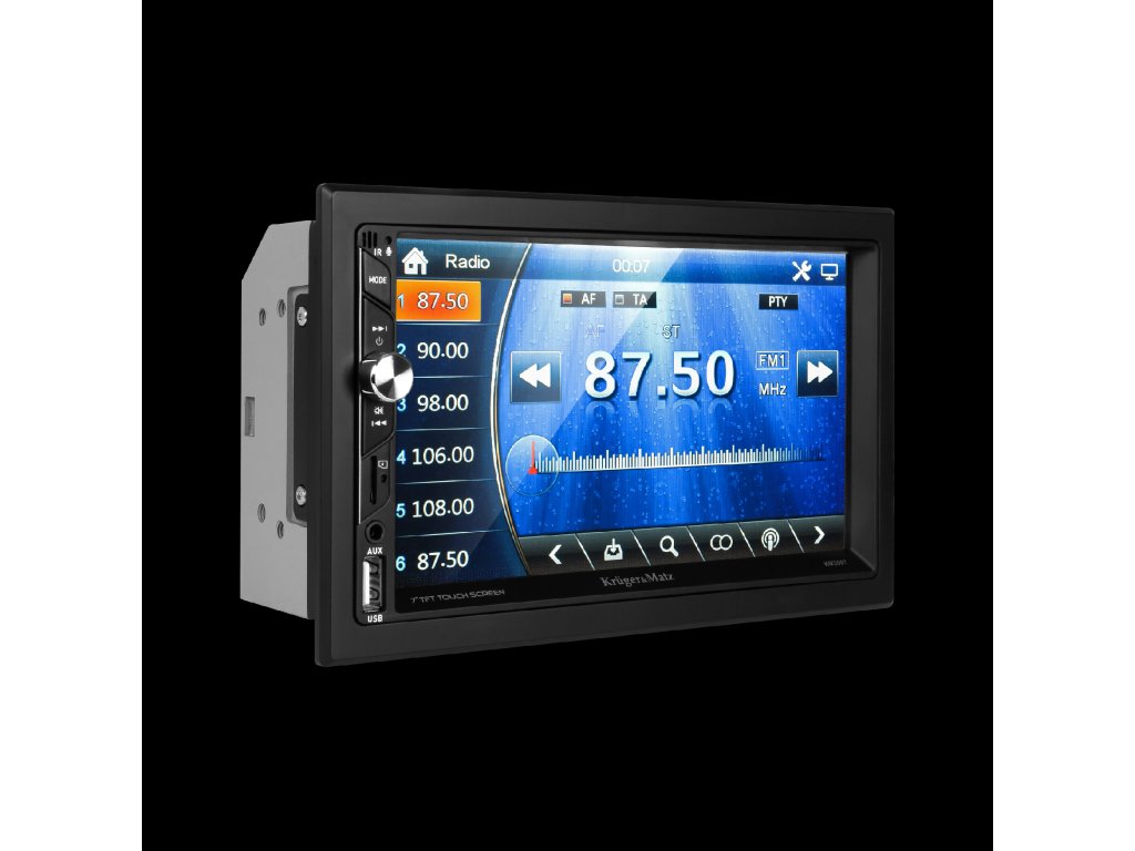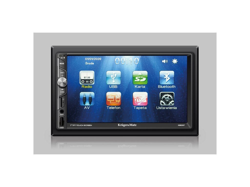 Autoradio Kruger&Matz KM 2007 nudi vam širok spektar mogućnosti u pogledu odabira izvora zvuka i slike. Osim Bluetooth funkcije, na raspolaganju imate port USB, AUX utor i čitač memorijskih kartica.