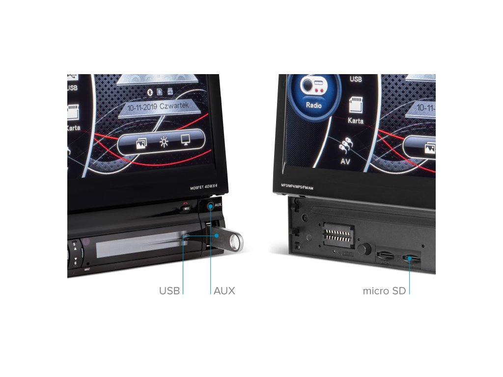 Putovanje vam može uljepšati ne samo glazba s radija. Zahvaljujući brojnim portovima, možete reproducirati videozapise i pjesme s memorijskih medija, poput USB sticka ili micro SD kartice. Uređaj ima i AUX utičnicu i funkciju Bluetooth, koja omogućuje reprodukciju popisa pjesama sa pametnog telefona.