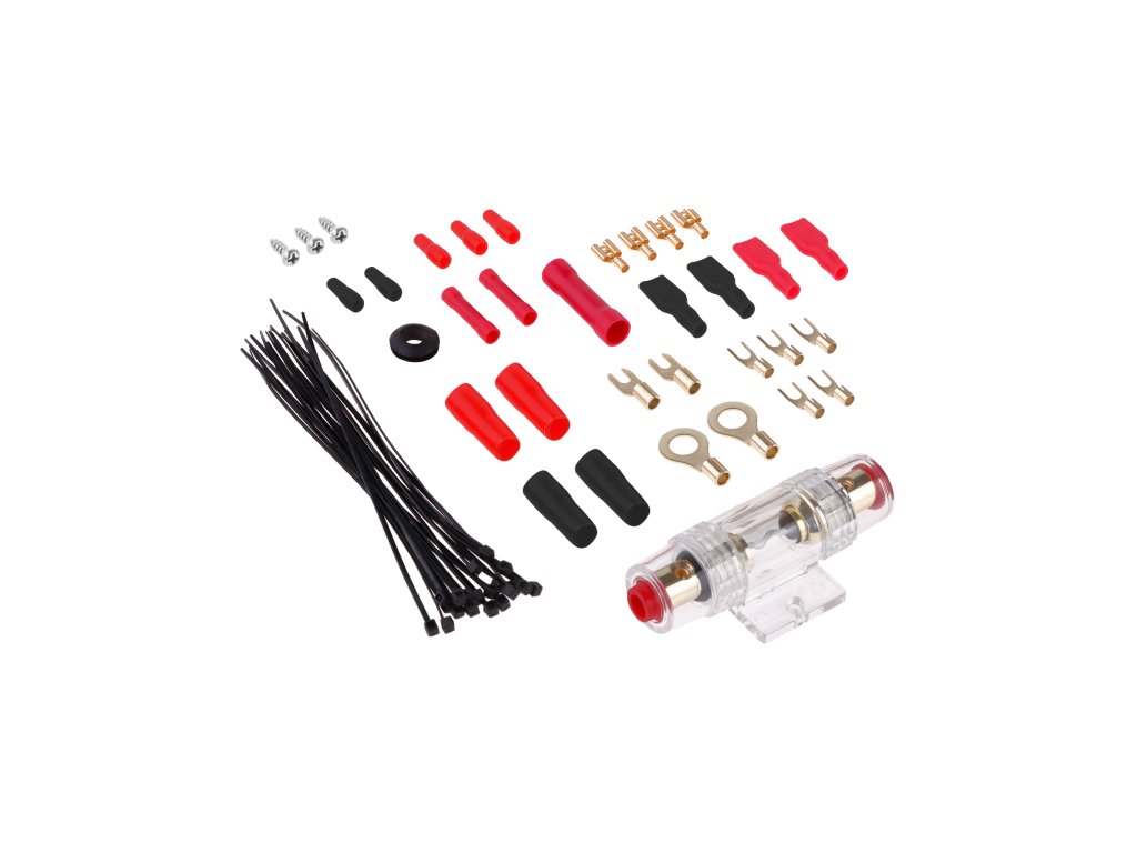 Priključivanje pojačala u automobil zahtijeva nekoliko dodatnih dodataka, stoga osim nekoliko kabela - naponskog, zvučničkog, RCA i upravljačkog kabela - set Kruger&Matz sadrži i: osiguračnicu s 60A osiguračem i zaštitno crijevo koje će se pobrinuti za sigurnost kabela tako da ih zaštiti od nečistoća ili vlage. U setu nije moglo nedostajati ni montažni pribor - sve što će vam olakšati samostalno spajanje pojačala. Proširite svoj audio sustav u automobilu i krenite na put.