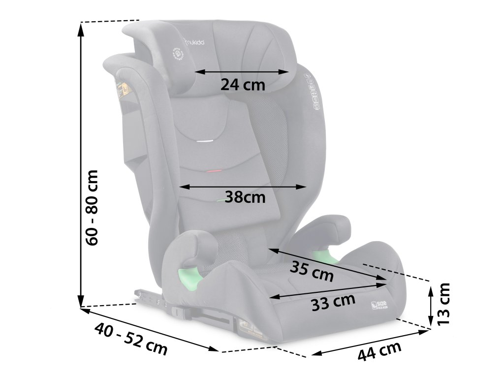 - Skupina III (22 - 36 kg) - 6-12 godina - instalacija pomoću sustava ISOFIX i sigurnosnih pojaseva