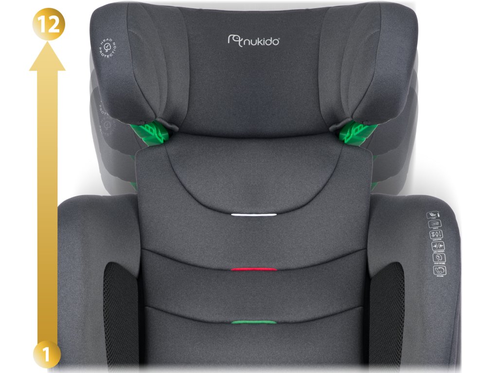 12-stupanjsko podešavanje naslona za glavu – omogućuje savršeno prilagođavanje visine sjedala potrebama vašeg djeteta i osigurava udobno i sigurno putovanje.