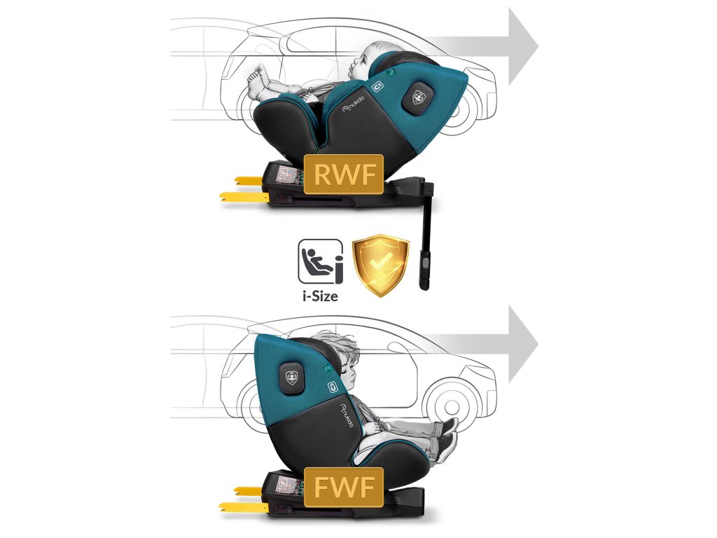 - montaža u poziciji okrenutoj prema natrag (RWF) namijenjena djeci visine 40-105 cm (odgovara dobi od rođenja do oko 4 godine),