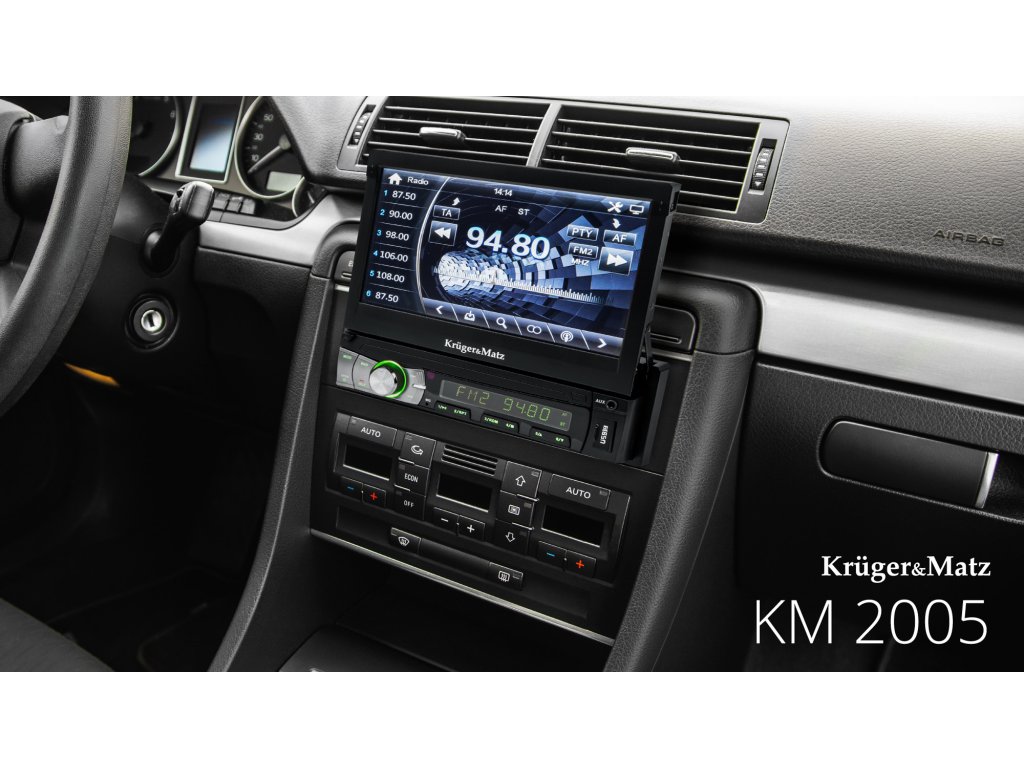 Sanjate o auto radiju s velikim zaslonom, ali nemate mjesta za njega u automobilu Kruger&Matz KM 2005 riješit će vaš problem! Ovaj 1DIN uređaj ima 7" klizni zaslon osjetljiv na dodir. Provjerite sami kako se uklapa u unutrašnjost vašeg automobila!