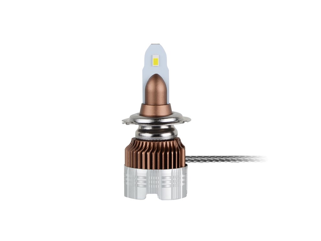 Technologia: LED Typ: INTELLED H7 Moc: 30 W Napięcie wejściowe: 9 ~ 16 V DC Temperatura barwowa: 6500 K Strumień świetlny: 3000 lm Skuteczność świetlna: 100 lm/W Stopień ochrony: IP67 Żywotność: do 30 000 h Temperatura pracy: -30°C ~ +60°C Wymiary: - długość całkowita- 73 mm - szerokość cześci świecącej (SMD w obudowie) : 13 mm - średnica radiatora: 31 mm - średnica kołnierza: 33 mm.Technologia: LED