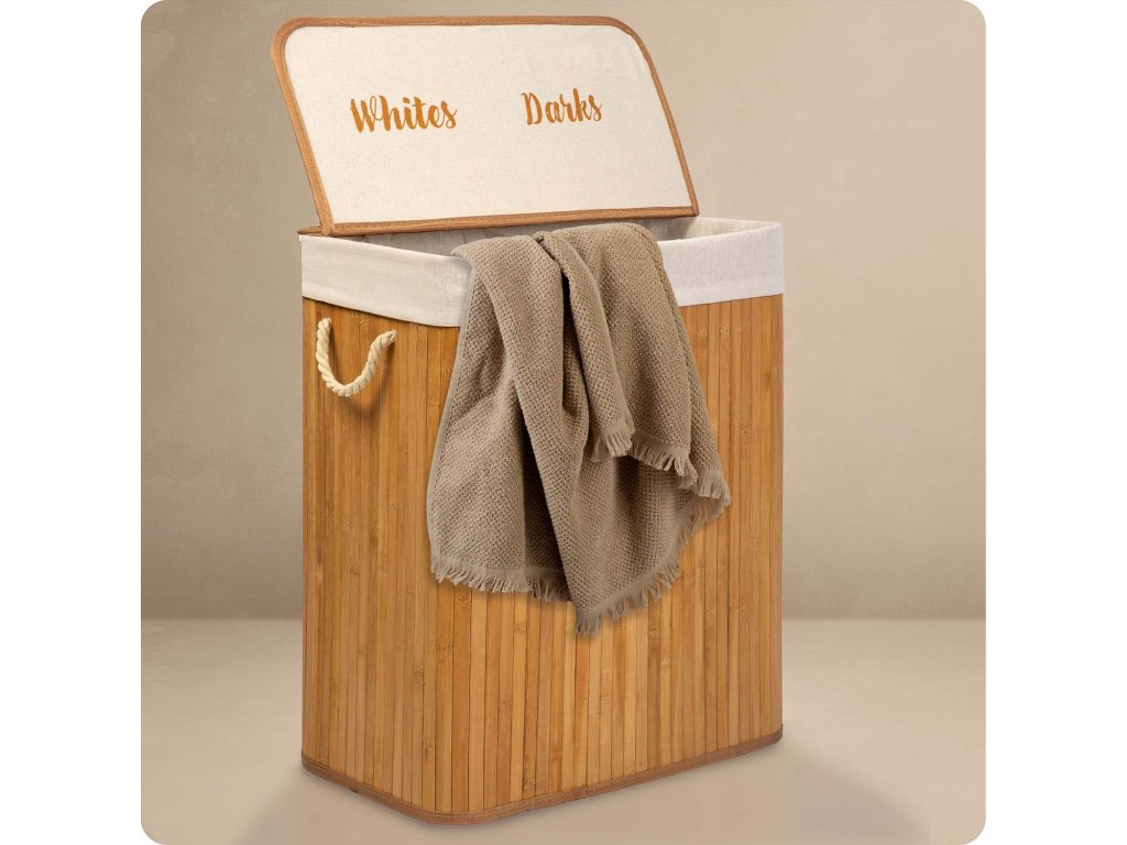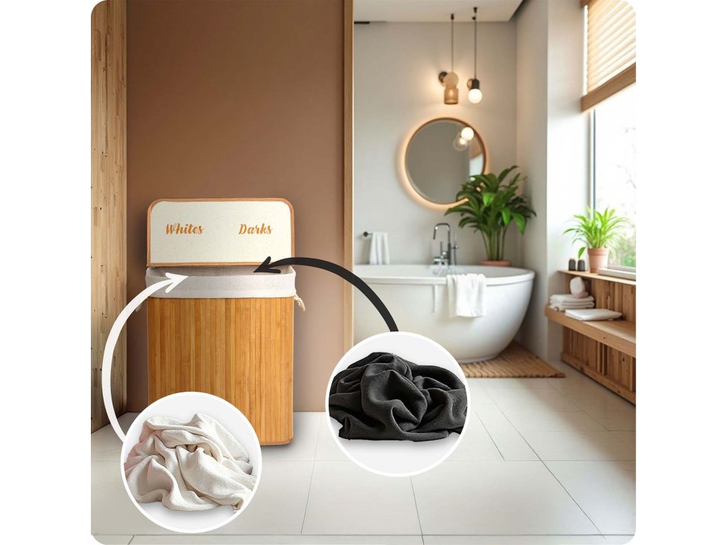 Dvokomorni košara za pranje rublja od bambusa 100l