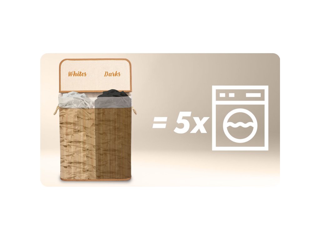 Podstava od prirodnog pamuka pretvara košaru u praktičnu vreću za pranje. Kad ju napunite, jednostavno ju izvadite, zavežite i prenesite u perilicu – uštedjet ćete vrijeme, izbjeći nered i održati čistoću.