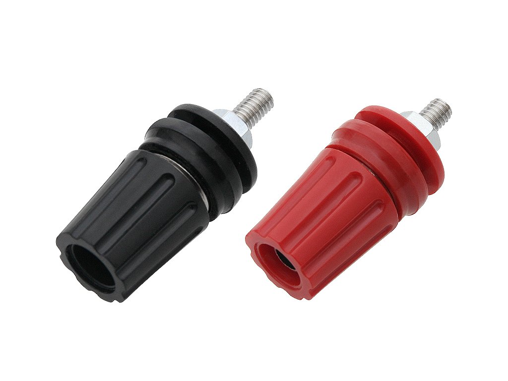 Dva "banana" utikača tipa III ZL30 u crnoj i crvenoj boji.