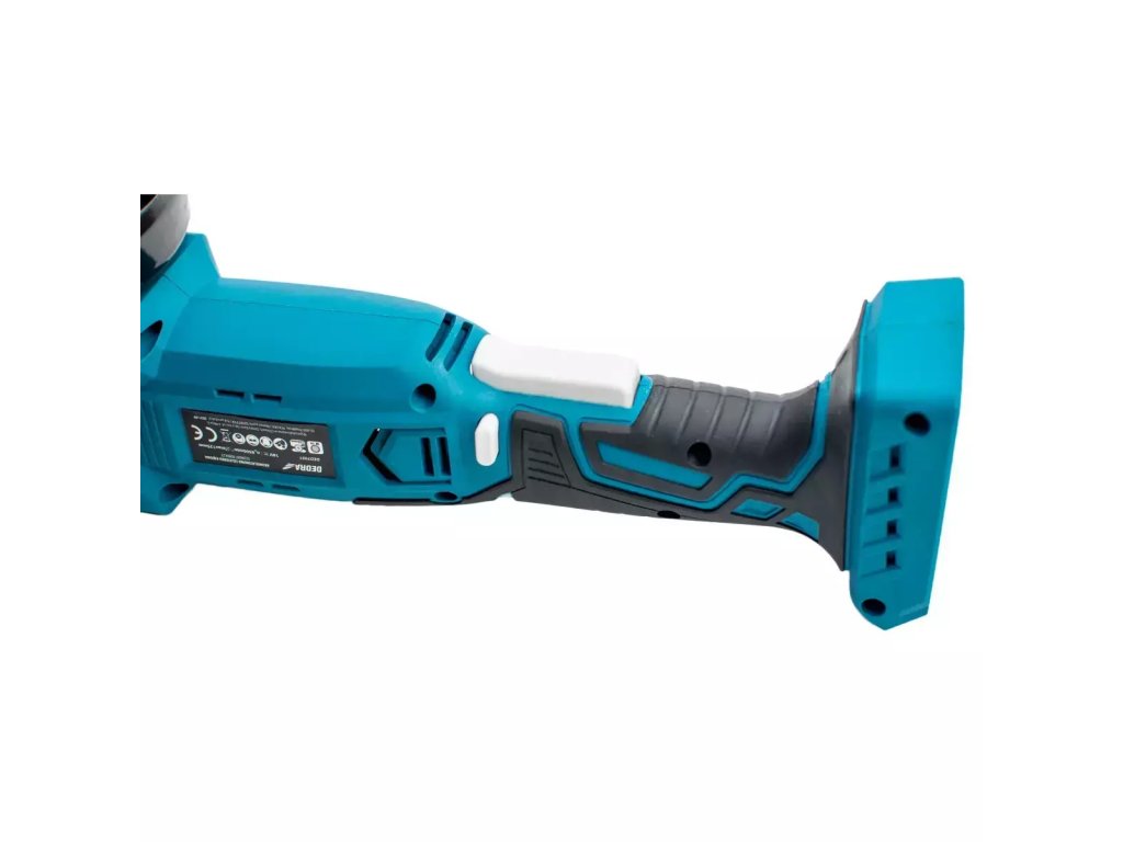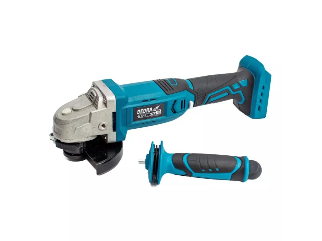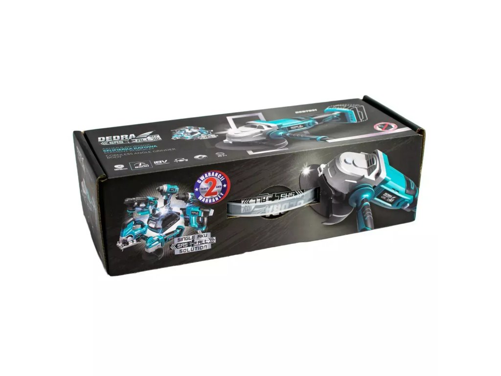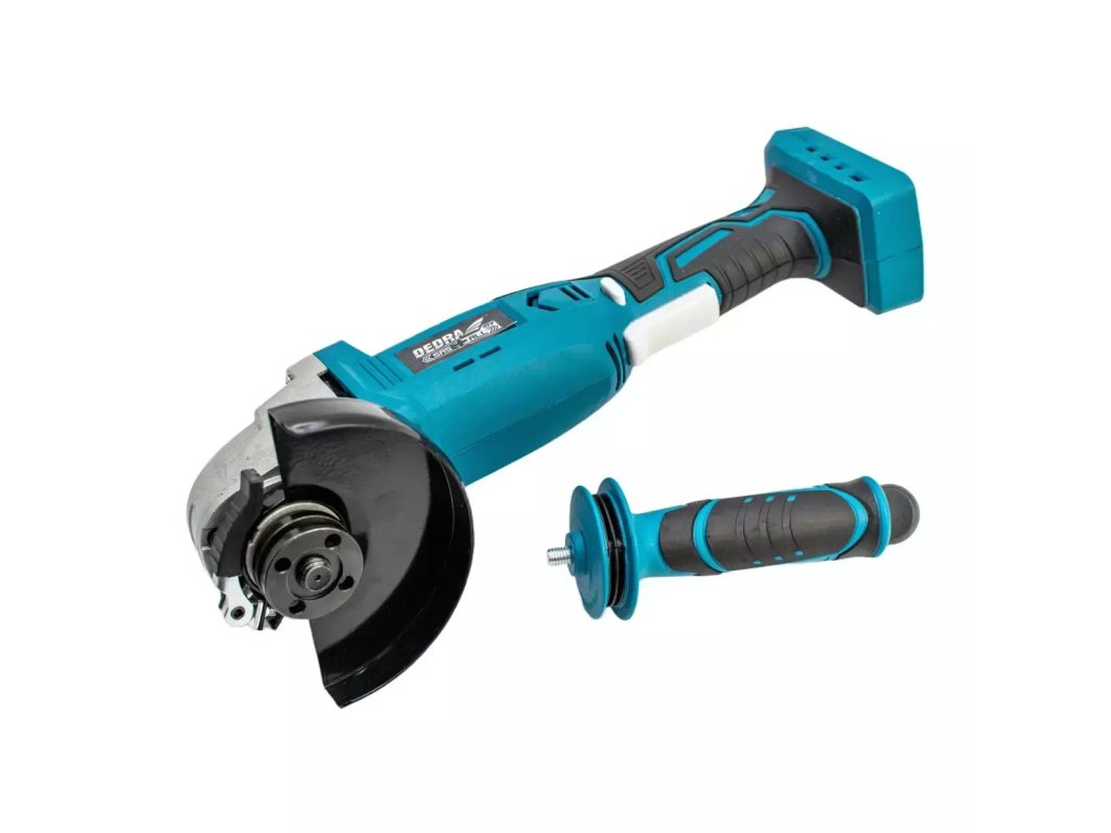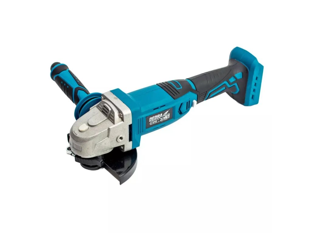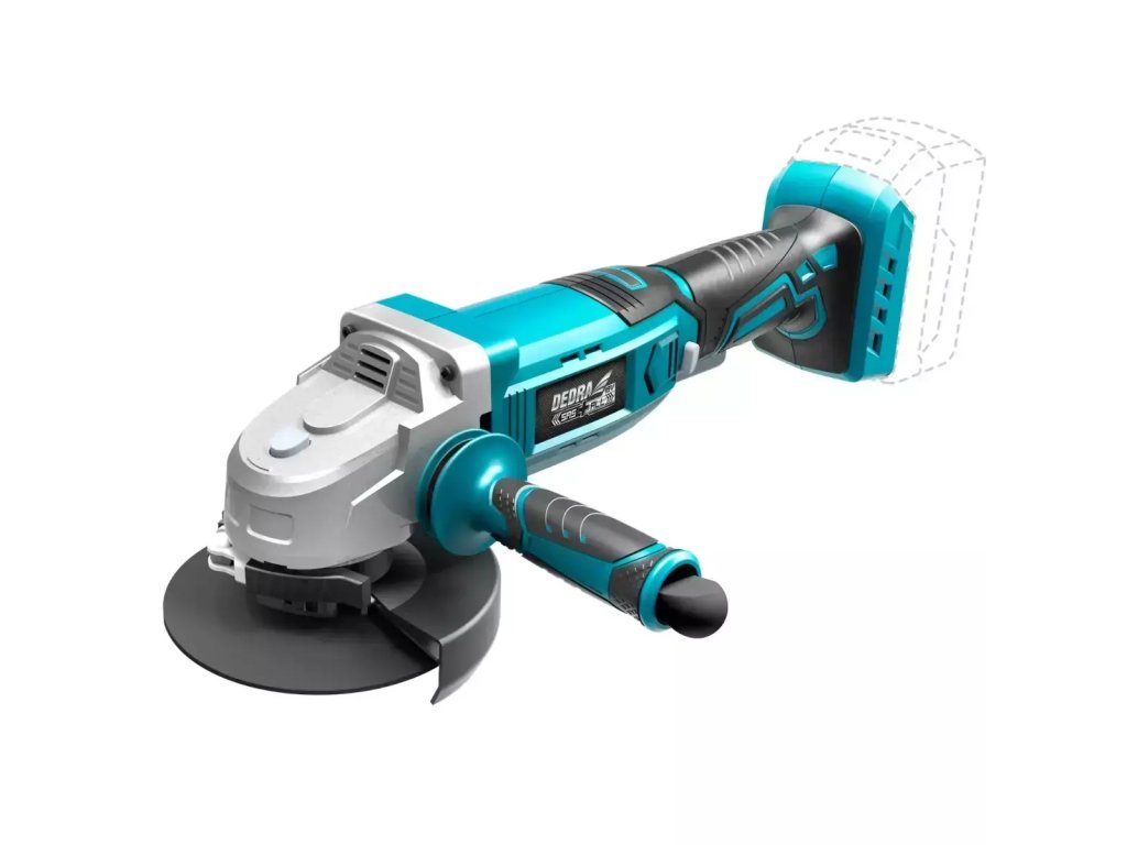 Ovaj alat je dizajniran za rezanje i brušenje. Motor brusilice postiže brzinu od 8.500 okretaja u minuti i kompatibilan je s diskovima veličine 125 mm i 115 mm. Brusilica je opremljena sigurnosnim prekidačem koji osigurava da ne dođe do prekida napajanja u slučaju prekomjernog pritiska na obradu, što bi moglo dovesti do oštećenja ili pregrijavanja stroja. Brzi sustav stezanja diska, dvopoložajna bočna ručka i gumena ručka, kao i produžena zaštita omogućuju mnogo udobnije korištenje alata. Ključ za izmjenu oštrice nalazi se u bočnoj ručki, tako da je uvijek na dohvat ruke prilikom izmjene oštrice ili drugih nastavaka. Kućište je izrađeno od najlona s jezgrom od staklenih vlakana, koje povećavaju otpornost na mehanička oštećenja i UV zračenje. Ergonomiju i udobnost povećava mala težina uređaja i gumena ručka. Preporučena baterija za korištenje s bežičnom kutnom brusilicom je 4,0 Ah DED7034.