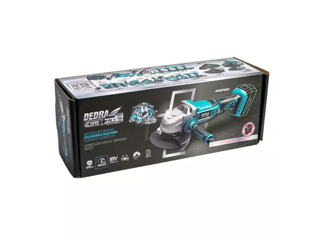 Baterijska kutna brusilica, duga 18 V, DEDRA SAS+ALL DED7051 125 mm, 8500 o/min DED7051
