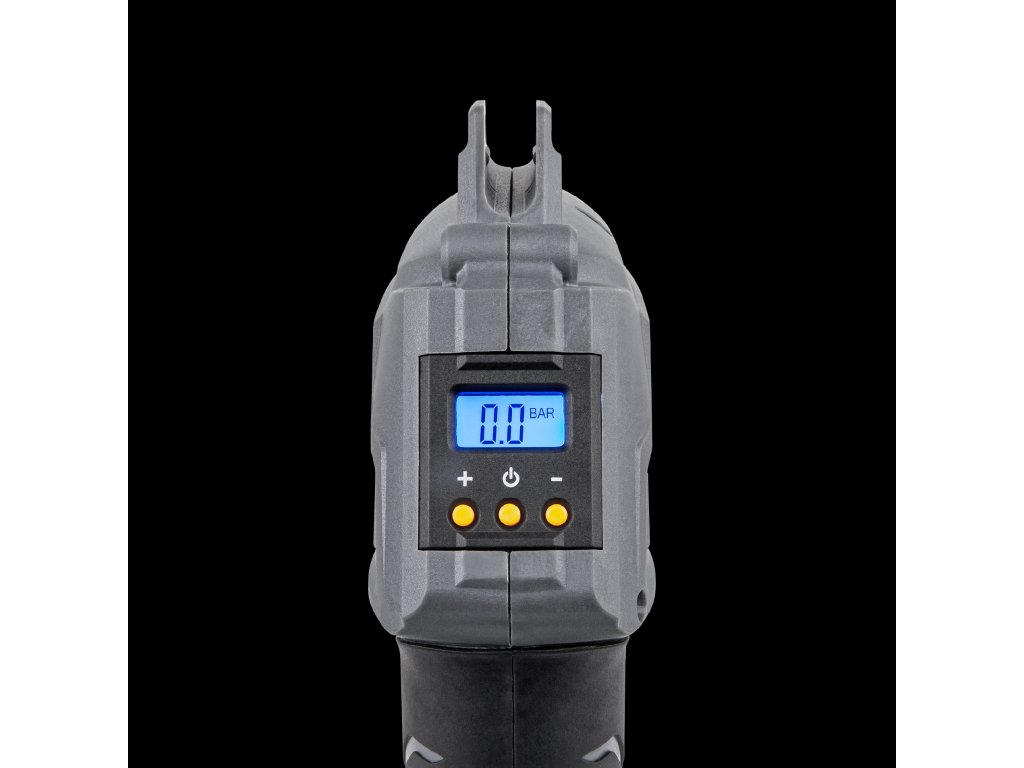 Napuhavanje se može izvesti na dva načina: ručno, držanjem prekidača dok se ne postigne željeni tlak, ili automatski, podešavanjem odgovarajućeg tlaka pomoću tipki +/- - kompresor automatski zaustavlja napuhavanje nakon postizanja postavljenog ograničenja. Prednost uređaja je osvijetljeni LCD zaslon s digitalnim prikazom, koji će kontinuirano pokazivati porast tlaka u napuhavajućem objektu.