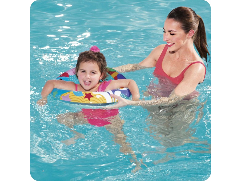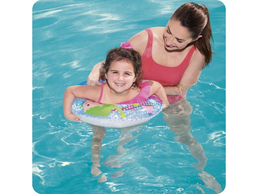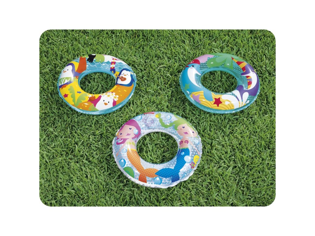 Plaža prsten za djecu, za plivanje 51 cm Bestway: 36113 Tijekom praznika nema ugodnijeg načina provođenja vremena od igre u vodi. To znaju i najmlađa djeca. Zato je proizvod marke Bestway - napuhavajući prsten nezaobilazan plažni artikl bez kojeg nijedno putovanje na vodu ne može proći. Ovaj model se ističe iznimno šarenom grafikom koja će zasigurno uljepšati mališanima zabavu na moru, jezeru ili u kućnom bazenu. Promjer prstena nakon napuhavanja iznosi 51 cm, što je optimalna dimenzija za djecu od 3 do 6 godina. Model Bestway izrađen je od izdržljivog vinila, koji je siguran za djecu, osigurava ugodnu i meku površinu na dodir. To je proizvod koji pravilnom upotrebom jamči vašem djetetu zabavu u vodi tijekom nekoliko ljetnih sezona. Napuhavajući prsten Bestway namijenjen je isključivo za upotrebu u vodi, na dubini koja omogućuje djetetu da osjeti dno, pod nadzorom roditelja. Glavne značajke: prekrasne, ljetne boje s motivom dupina udoban i stabilan flaster za popravak uključen u set Tehnički podaci: Promjer: 51cm Materijal: PVC Debljina PVC-a: 0,25 mm Težina: 0,3 kg Preporučena dob: od 3 do 6 godina Proizvođač: BestwayAdditional parameters