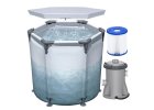 Nafukni bazen Bestway lagan je i siguran bazen za djecu od 2 godine. Izrađen je od izdržljivog PVC-a, ima 2 prstena, sigurnosne ventile i šareno dno. Idealan za balkon, terasu...