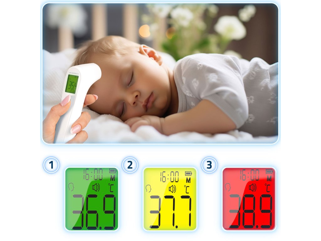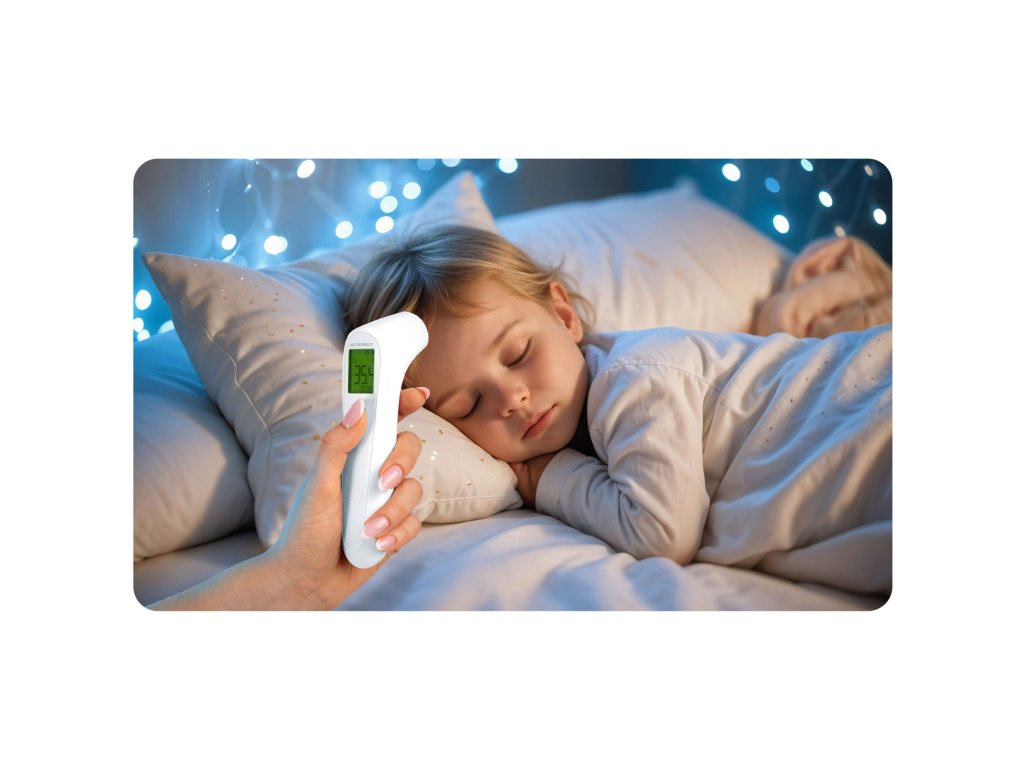 Beskontaktno mjerenje je sigurno i udobno za djecu, čak i tijekom spavanja, bez rizika od njihovog buđenja.