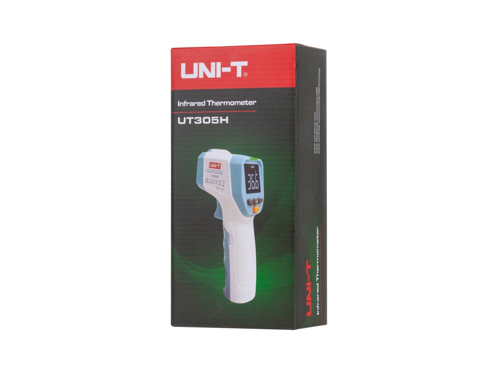 Termometar UNI-T UT305H koristi najnoviju tehnologiju i omogućuje mjerenje temperature u rasponu od 32 °C do 42,9 °C. Visoka preciznost uređaja omogućuje brzo i točno praćenje tjelesne temperature, kao i temperature drugih elemenata u okruženju, kao što su predmeti, hrana, tekućine itd.