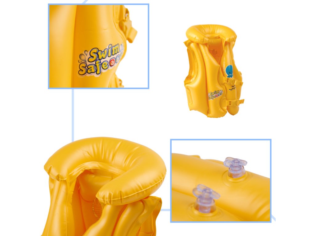 Nafukovacia záchranná vesta udrží vaše dieťa vo vode na hladine a umožní mu užiť si zábavu v bazéne. Vďaka nastaviteľným popruhom dokonale padne, a preto sa vaše dieťa bude vo vode cítiť sebaisto. Môže byť skvelou pomôckou pre batoľatá, ktoré sa boja vody.