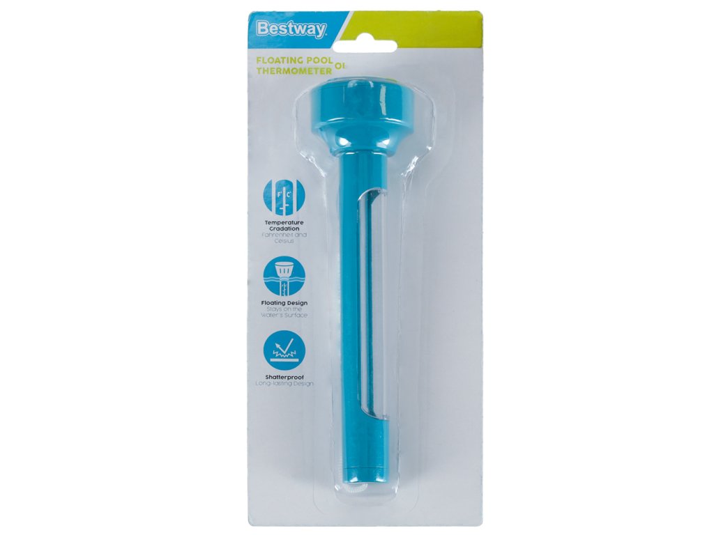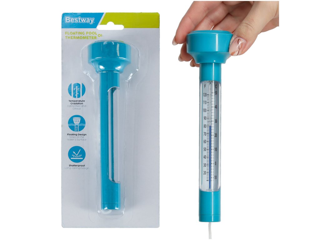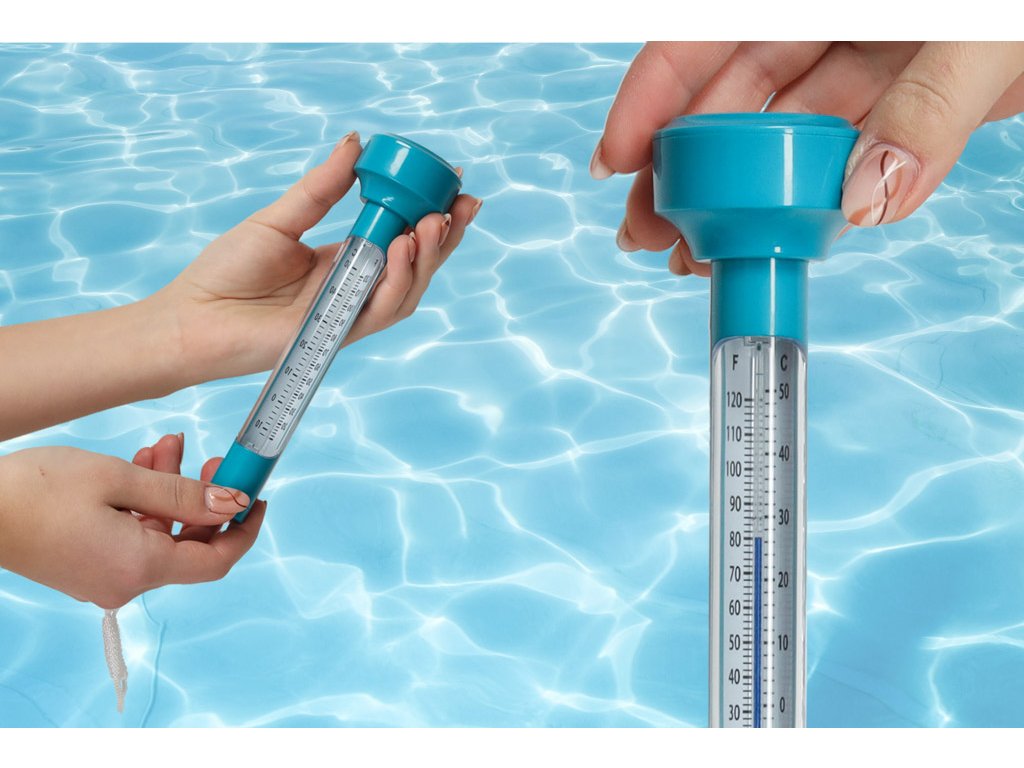 Bazenski termometar je jedan od onih dodataka koji će vam sigurno biti korisni tijekom ljetnih mjeseci. Uz njegovu pomoć lako možete provjeriti, je li voda u vašem bazenu dovoljno topla. Zahvaljujući posebnoj konstrukciji termometar stalno pluta na površini vode. Osim toga, dostupna jeuzica za njegovo pričvršćivanje na okvir bazena.