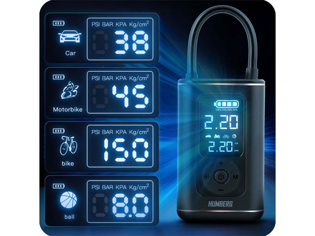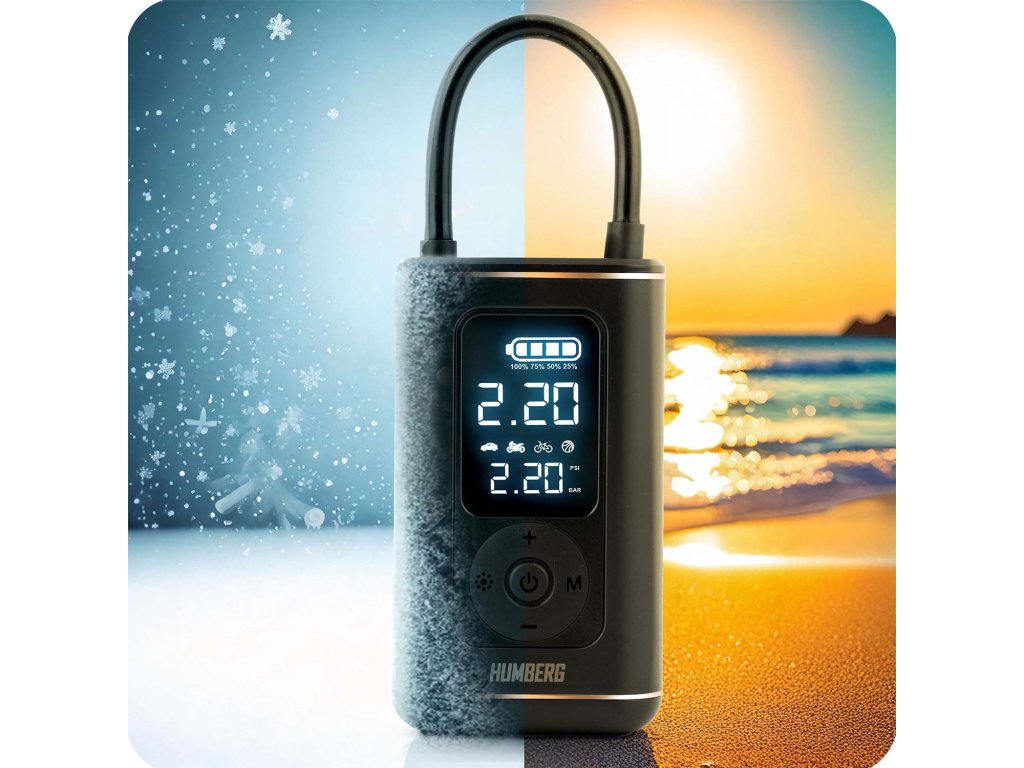- Mini kompresor je snažna izvedba zatvorena u kompaktnoj konstrukciji. Bez problema napuhuje automobilske, motociklističke i biciklističke gume, a zahvaljujući ugrađenom senzoru tlaka automatski se isključuje nakon postizanja postavljene vrijednosti.